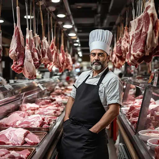 9 months ago in the photo, a butcher is standing in his department in a store and looking at the camera f051c6886da 0 18