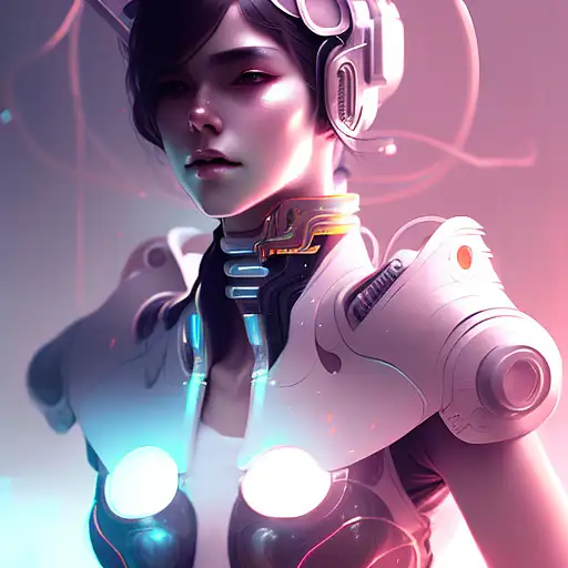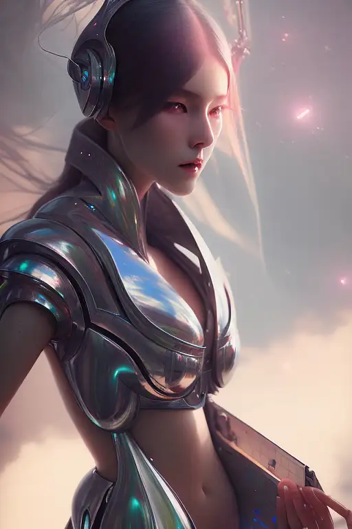 almost 3 years ago Concept art by wlop and guweiz a beautiful female with stylish futuristic cyberpunk outfit create a painting on a holographic interface f4cc5231322 0 120