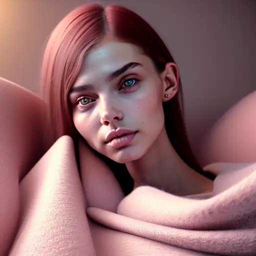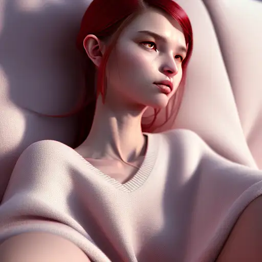 almost 3 years ago 3d render of a cute thin young woman, red blush, wearing casual clothes, small smile, relaxing on a couch, cuddling up under a blanket, cozy living room, medium shot, 8 k, octane render, trending on artstation, art by artgerm, unreal engine 5 f4cc5231322 0 89