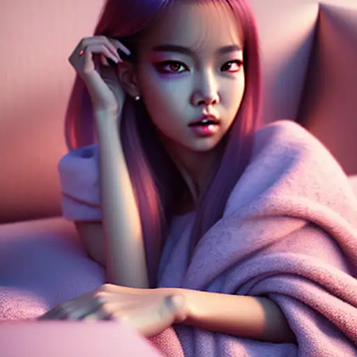 almost 3 years ago 3d render of a cute thin young woman inspired by lisa from blackpink, red blush, wearing casual clothes, small smile, relaxing on a couch, cuddling up under a blanket, cozy living room, medium shot, 8 k, octane render, trending on artstation, art by artgerm, unreal engine 5 f4cc5231322 0 130