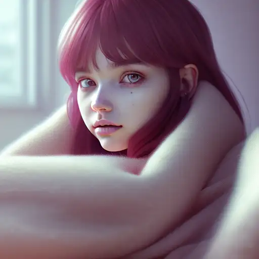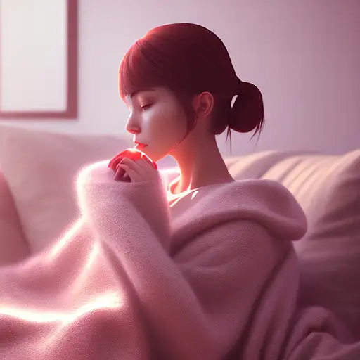 almost 3 years ago 3d render inspired by wlop of a cute thin young, red blush, wearing casual clothes, small smile, relaxing on a couch, cuddling up under a blanket, cozy living room, medium shot, 8 k, octane render, trending on artstation, art by artgerm, unreal engine f4cc5231322 0 160