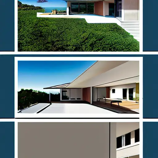 over 2 years ago make a city with Hyper realistic eye level exterior photo of a mid century modern style house overlooking the ocean, daylight, indirect lighting, AD magazine, Frank Lloyd, Eames, Mies van der Rohe fantasyfreak22 0 65