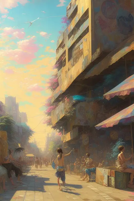 2 years ago SFW, Beautiful anime painting of solarpunk summer chill day, by tim okamura, victor nizovtsev, greg rutkowski, noah bradley. trending on artstation, 8k, masterpiece, graffiti paint, fine detail, full of color, intricate detail, golden ratio illustrationSteps: 50, Sampler: DPM2 a Karras, CFG scale: 7, Seed: 3410174956, Size: 512x768, Model hash: a2a802b2 fatbear 0 77