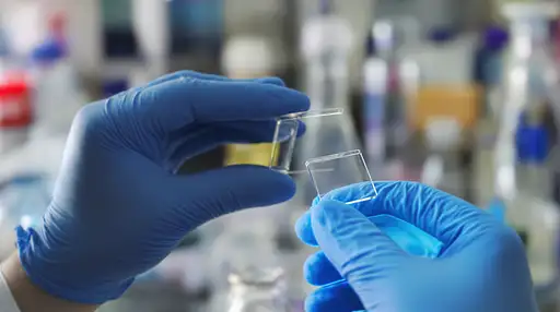 8 months ago A close-up photograph of a gloved hand holding a small, rectangular, transparent glass slide. The slide is being carefully placed onto a blue plastic holder. The background is out of focus, showing a blurry laboratory setting with various glassware and equipment. The lighting is soft and diffused, creating a sterile and professional atmosphere. The hand is wearing blue latex gloves, and the focus is on the precise and meticulous action of preparing the slide. The image conveys a sense of scientific precision and attention to detail. fb2e9a74f36 0 33