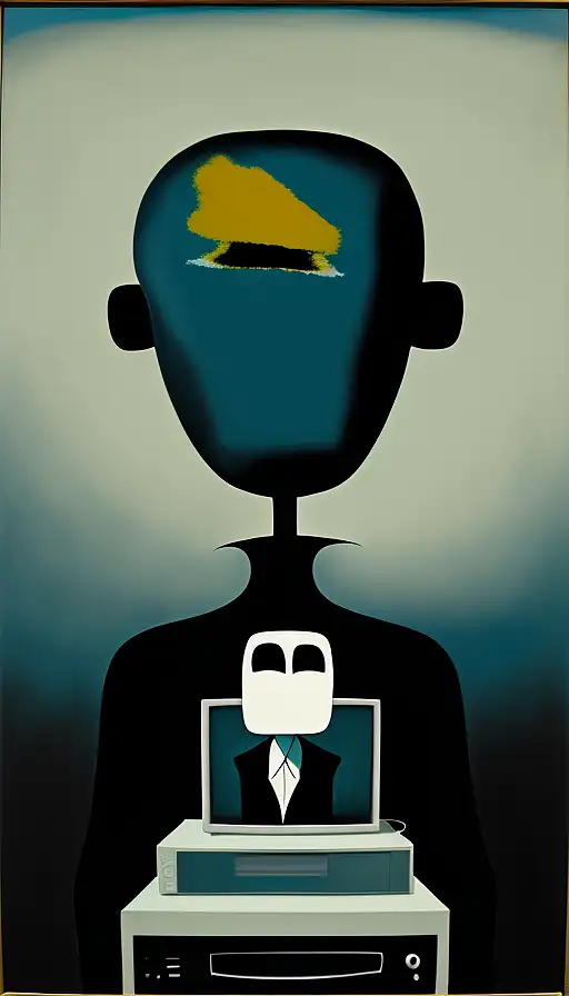 11 months ago a painting in the style of Yves Tanguy of a man who has a television for a head. fefe5e50b28 π 0 23