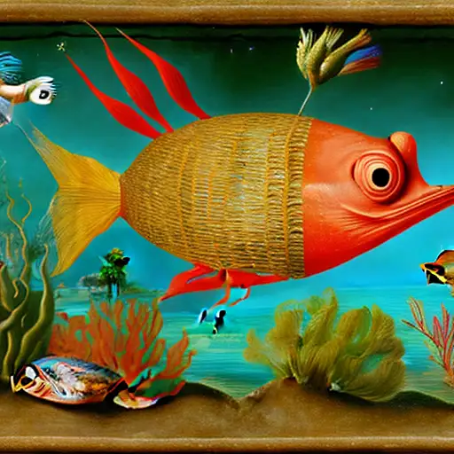 11 months ago an 8k image in the style of Jan van Eyck of a fish that is part bird and of a bird that is part fish in an underwater environment in the renaissance style fefe5e50b28 π 0 38