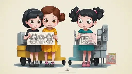 over 2 years ago a comic with two girls and glueing things on a table, in the style of cute and colorful, wrapped, valentine hugo, animated gifs, mommy's on-the-phonecore, meticulous design, toyen future 0 86