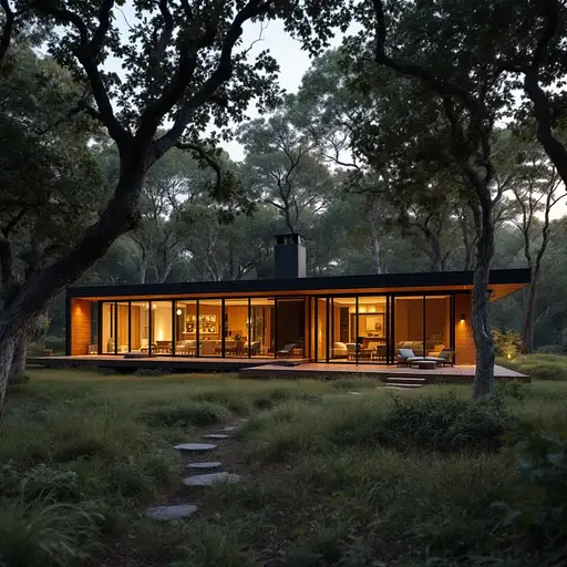 10 months ago Moderna casa hecha con contenedores en un bosque , rodeada de grandes arboles, auto sustentable, luz del amanecer, con una hermosa vista con grandes espacios de madera y ventanales grandes. golfotango 0 65