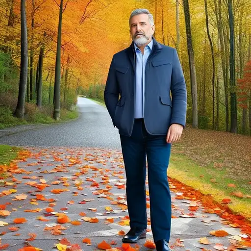 2 years ago "hyper-realistic image of a man around 40 years old on an autumn day, He will be dressed casually yet elegantly. The composition will depict the man walking along a path surrounded by autumn trees and rustling leaves. Focus the image on the man's serenity as he emotionally connects with nature. Capture the vibrant colors and tranquil atmosphere of autumn. Ensure to highlight the details of his attire and the expression on his face. Use a hyper-realistic style to bring the image to life. Employ lighting techniques that enhance facial details and leaf textures. Use a warm and earthy color palette to evoke the autumn sensation. The image should have a resolution of at least 3000x4000 pixels to capture all the details." golfotango 0 110