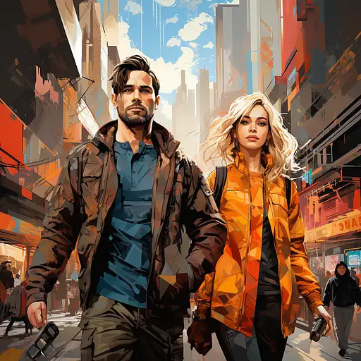 2 years ago friends walking in a big city, cyberpunk poster, in the style of Erik Jones, social media portraiture, sparth, vibrant color fields, graffiti and street art, highly detailed figures, hyper-detailed --s 750 VITAK 5 180