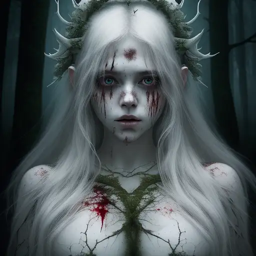 2 years ago beautiful stunning ethereal white female, eerie forest queen, blood splatter, photorealistic, ultra detailed, lighting, hdr. --ar 9:16 ba6967820d7 1 25