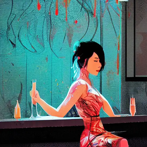 over 2 years ago a sensuel looking woman sitting in a bar|a chinese girl|wearing a fedora and a elegant dress| centered| key visual| intricate| highly detailed| breathtaking beauty| precise lineart| vibrant| comprehensive cinematic| Carne Griffiths| Conrad Roset, gta vice city iiitokyo 0 52
