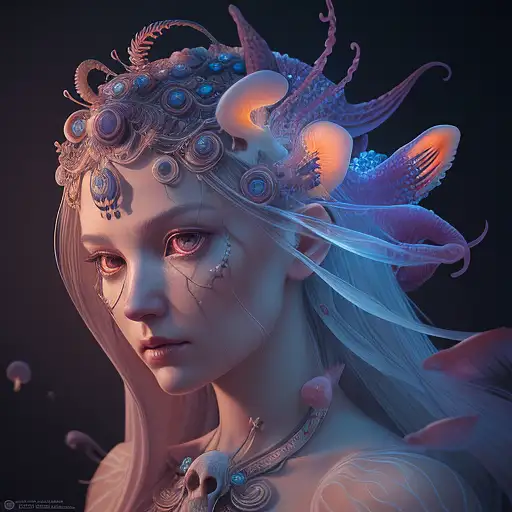 over 1 year ago Goddess close-up portrait ribcagel. jellyfish phoenix head, nautilus, orchid, skull, betta fish, bioluminiscent creatures, intricate artwork . octane render, trending on artstation,t symmetrical artwork. cinematic, hyper realism, high detail, octane render, 8k itsrohit 0 46