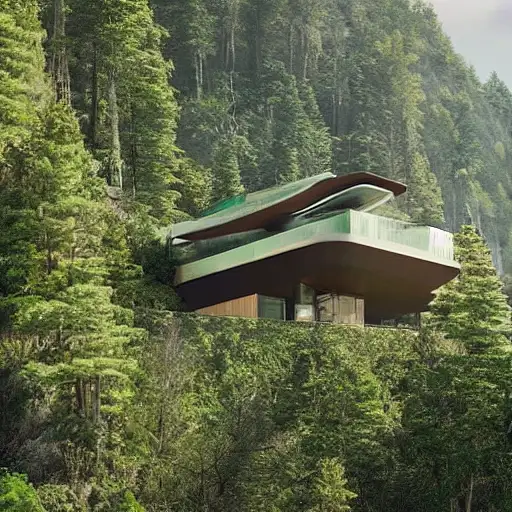 3 years ago futuristic single-level house overlooking a cliff, with a zoomed mountain-side in the background with a wild forest 9453d915baa 2 430