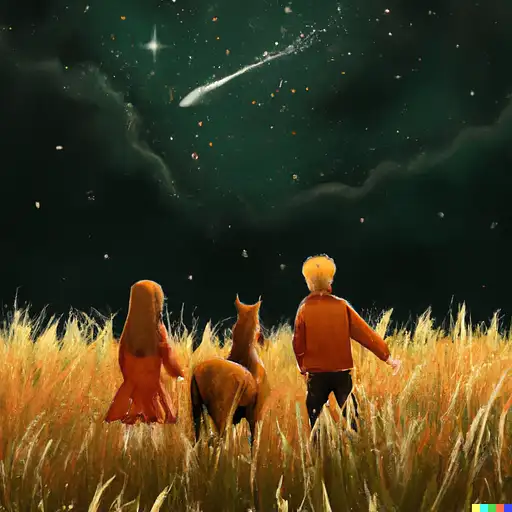 3 years ago A starry night in a boundless grass plain with one boy and one girl playing with a horse DALL-E 1 330