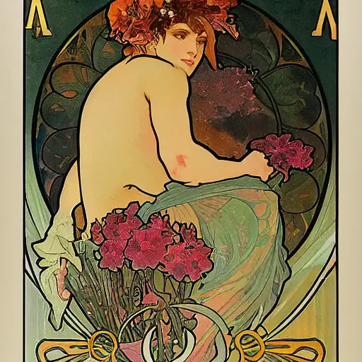 3 years ago golden letter M flowers intricate water color Alphonse Mucha with dark Doom background ReachingMyDream 1 360