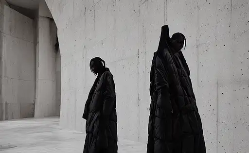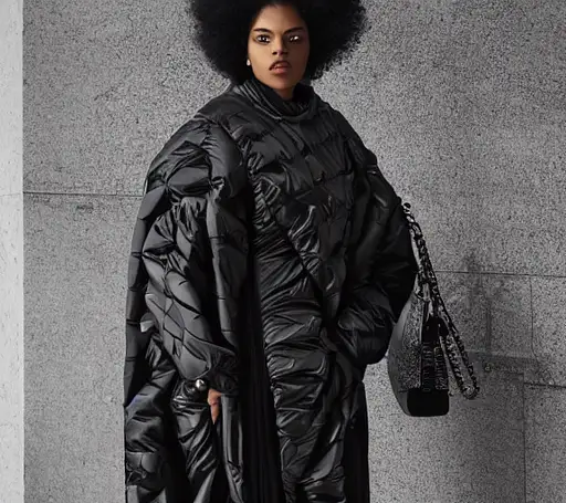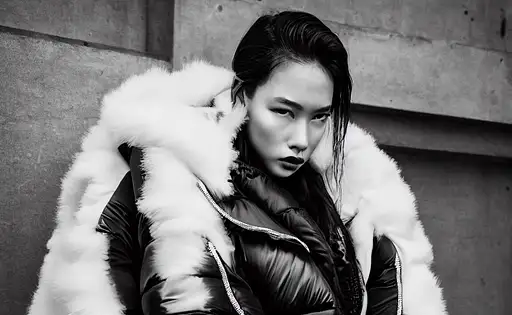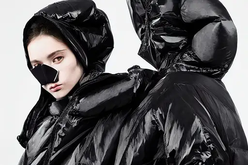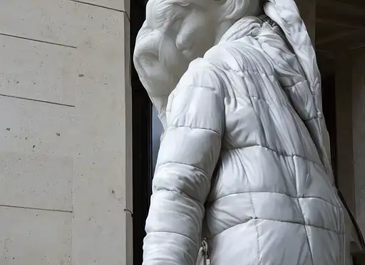 beautifully lit portrait of extremely beautiful female marble statue wearing huge over size puffer jacket by dingyun zhang, the statue is made of white marble with cracks and flaws, white hair, white eyes, white face, black and white photo, avant garde, haute couture, bubble jacket, puffer jacket, puffer pants, puffer dress, puffer shoes, puffer pants, snow suit, moncler genius, craig green, sharp focus, clear, detailed,, cinematic, detailed, off white, glamourous, symmetrical, vogue, editorial, fashion, magazine shoot, glossy