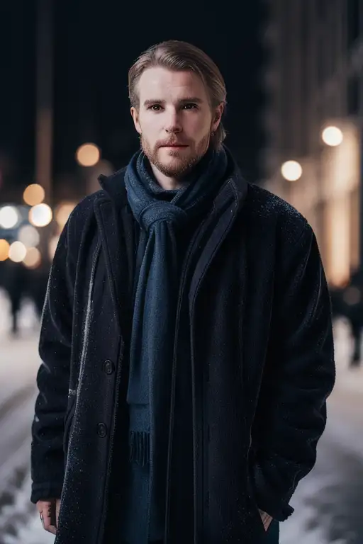 over 2 years ago professional portrait photograph of a handsome Norwegian man in winter clothing, standing outside in snowy city street, stunning modern urban upscale environment, ultra realistic, concept art, elegant, highly detailed, intricate, sharp focus, depth of field, f/1. 8, 85mm, medium shot, mid shot, (centered image composition), (professionally color graded), bright soft diffused light, volumetric fog, trending on instagram, trending on tumblr, hdr 4k, 8k <lora:iu_V35:1> javierjrueda 7 650
