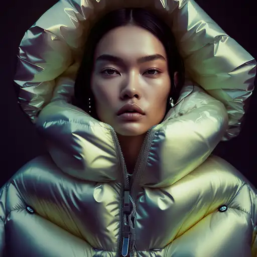 over 2 years ago well lit fashion shoot portrait of extremely beautiful female wearing massively over size puffer jacket by craig green, dingyun zhang, yeezy, balenciaga, vetements, sharp focus, clear, detailed, , cinematic, detailed, off white, glamourous, symmetrical, vogue, editorial, fashion, magazine shoot, glossy --q 2 javierjrueda 13 1.1k