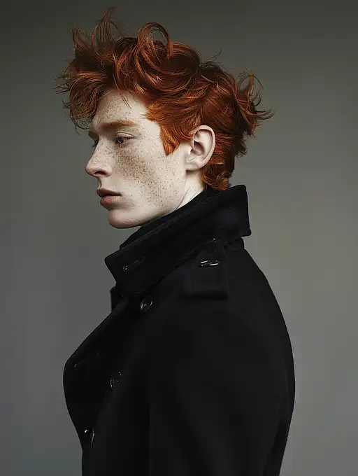 over 1 year ago a red-haired man, model, approximately 35 years old, extremaly fashion, wearing a french coat, Prada collection 1996, Canon EOS 5D Mark IV, EF 24-70mm f/2.8L II USM, solid and light background, set studio light --ar 3:4 kalonev 0 140