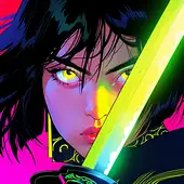 over 1 year ago The Cultural Revolution meets pop art, close up shot of a yellow eyes and black hair, holding a katana, manga style, in colorful comic book warrior costume, Mike Mayhew-inspired by Massimo Vignelli combined with Orphism, neon palette, energetic blue background painted --niji 5 kalonev 10 490