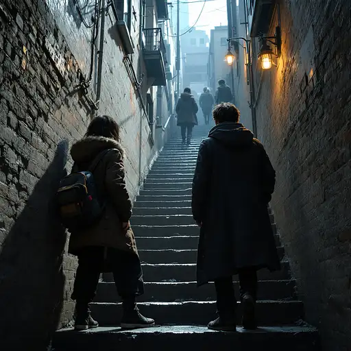 10 months ago Photo of a ultra realistic friend in a tight stairway, 4k, hyper realistic, focused, extreme details, unreal engine 5, cinematic, masterpiece, art by studio ghibli, intricate artwork by john william turner kaystudio 0 24