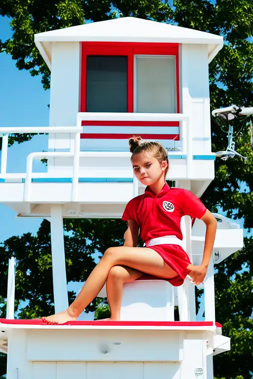 over 2 years ago 1girl, a girl as a lifeguard, sitting in the sun on a white lifeguard tower, plain white shirt, red shorts, 8k, professionally color graded, depth of field <lora:add_detail:1> kharon 0 58