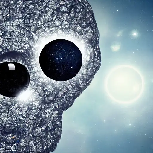 over 2 years ago an alien made of crystal, two big shiny black eyes, soulful eyes, planet in the background khiram67 0 79