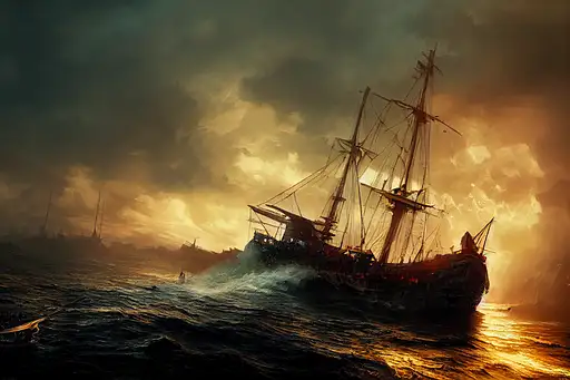 almost 3 years ago photo of a realistic ship, dramatic light, cinematic lighting, battered, low angle, trending on artstation, 4k, hyper realistic, unreal engine 5, cinematic, masterpiece JHawkk 21 1k