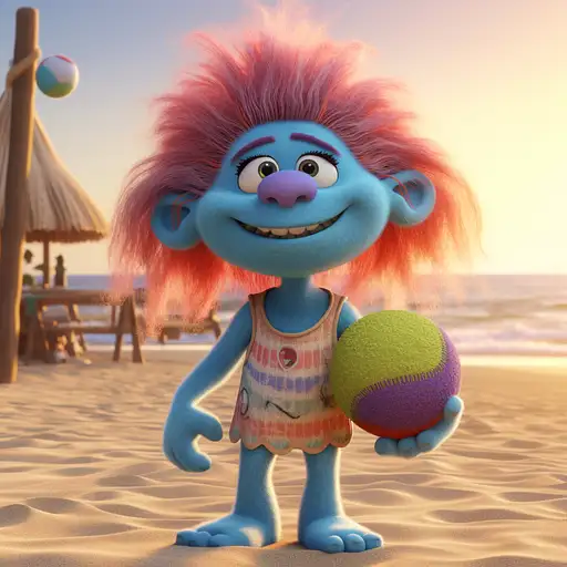 over 2 years ago a cute charming norwegian female troll as a muppet, pixar fur, vray renderer, beach volleyball --v 5 lajlev 1 220