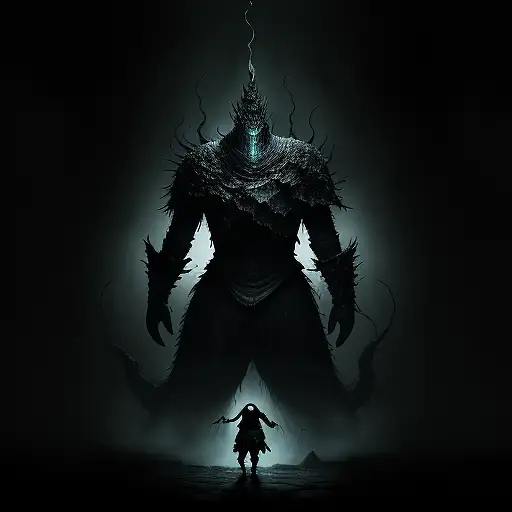 over 1 year ago spooky vibes black knight with gold sword at his side in a darck room. with monsters surrounding him. manyolorian 0 42