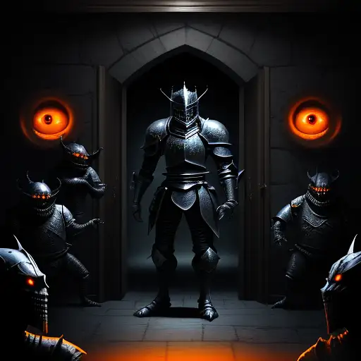over 1 year ago black knight in a darck room. with monsters surrounding him. glowing orange eyes all arownd him manyolorian 0 42