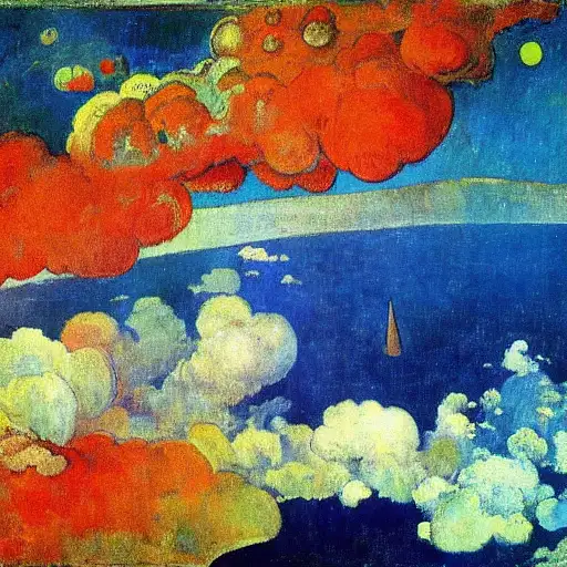 over 2 years ago earth with white clouds and blue water seen from space, bright colors, Paul Gauguin mb_ve 0 79