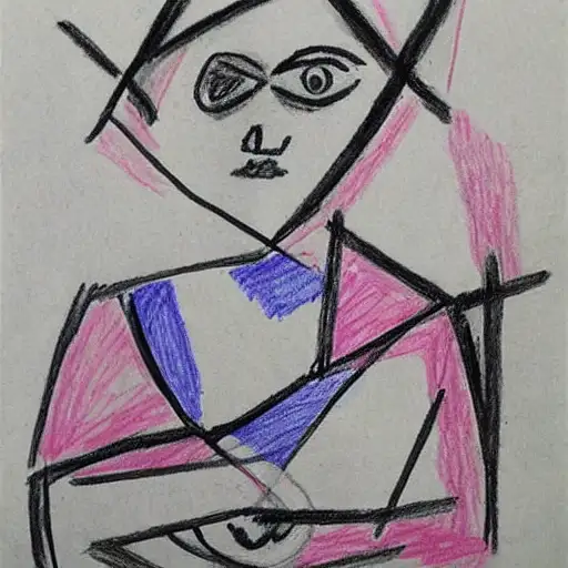 over 2 years ago A drawing by a 3-4 year old girl in the form of a Picasso painting can be a fascinating exploration of shape, color, and form. Picasso's art is known for its cubist style, which emphasizes geometric shapes and the deconstruction of traditional forms.While a young child may not have the same level of understanding or technical ability as Picasso, they may still be inspired by his unique approach to art. Their drawing may feature abstract shapes and distorted forms, with bold, bright colors and a sense of playfulness.Encouraging a child's artistic expression, regardless of whether it adheres to traditional norms or not, can help them develop a love of creativity and a sense of self-expression. Praising their efforts and allowing them the freedom to explore different styles and techniques can also help boost their confidence and encourage them to continue creating in the future. mjlee 0 60