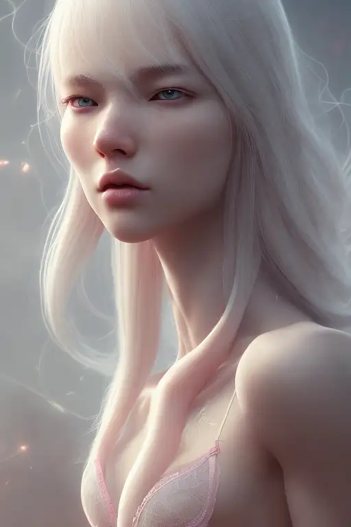 over 2 years ago mdjrny-v4 style, medium length white hair, a young South Korean girl wearing pink lingerie, proportional body, a highly detailed face by Greg Rutkowski and Magali Villeneuve, beautiful eyes, toned body, cinematic lighting, depth of field, photography, No breast exposure muzbox 0 200