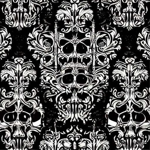 over 2 years ago the source of future growth dramatic, elaborate emotive metallic Baroque and Rococo styles to emphasise death as a transcendental, seamless pattern, symmetrical, large motifs, sistine chapel ceiling, 8k image, sharp focus, gothic mothifs and (skulls:1) in rococo style, black metal forge, black colors, perfect symmetry, 3D, no blur, sharp focus, photorealistic, insanely detailed and intricate, cinematic lighting, Octane render, epic scene, 8K muzbox 0 88