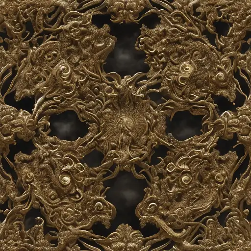 over 2 years ago the source of future growth dramatic, elaborate emotive metallic Baroque and Rococo styles to emphasise death as a transcendental, seamless pattern, symmetrical, large motifs, sistine chapel ceiling, 8k image, sharp focus, gothic mothifs and (skulls:1) in rococo style, black metal forge, black colors, perfect symmetry, 3D, no blur, sharp focus, photorealistic, insanely detailed and intricate, cinematic lighting, Octane render, epic scene, 8K muzbox 0 81