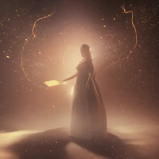 over 2 years ago photogenic woman holding a magical book| magical glowing trails| light dust| fantasy robes| highly detailed fantasy art| cinematic lighting| sharp focus| unreal| render| 4k mynamo101 0 50