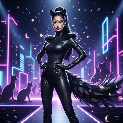 1 month ago Movie poster style, βGuardian of the Five Realms,β featuring five characters from the reference image, keeping their facial structures exactly the same. Center: red-haired warrior woman in detailed armor (main character). Surrounding: robotic cat with rainbow glasses, masked red-haired woman, astronaut, stylized cartoon woman with purple hair and glasses. Epic cinematic lighting, dramatic heroic and poetic atmosphere, background of ancient ruins with glowing magical portals, fire and mist effects, ultra-detailed, ultra-realistic yet artistic, centered composition, cinematic depth, high contrast, volumetric lighting, ultra HD, hyper-realistic textures, movie poster style. Morgue PRO 0 50