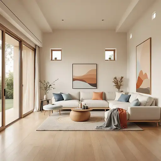 9 months ago High photography interior design, dreamy sunken living room conversation pit, wooden floor, small windows opening onto the garden, bauhaus furniture and decoration, high ceiling, beige blue salmon pastel palette, interior design magazine, cozy atmosphere; 8k, intricate detail, photorealistic, realistic light, wide angle, kinkfolk photography, A+D architecture osteoandoni 0 17