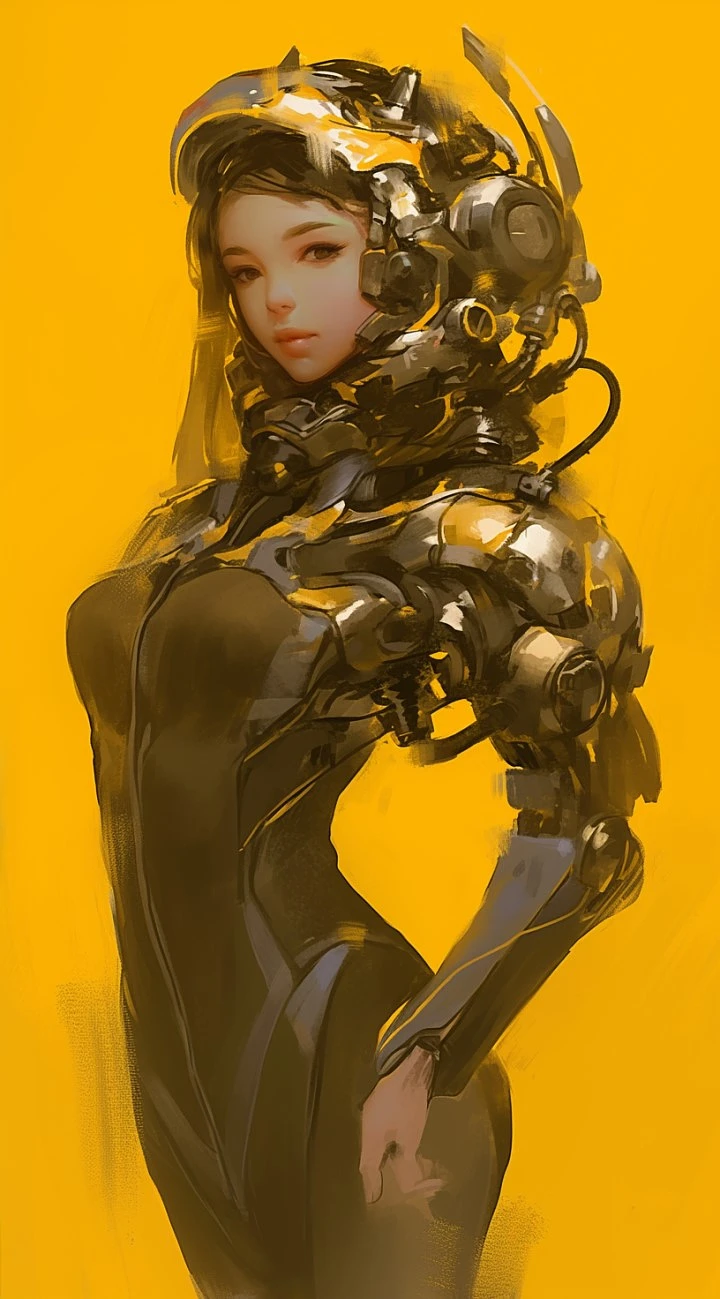 digital art images of beautiful with good form woman in futuristic cybernetic armor, beautiful golden hair , in the style of 32k uhd