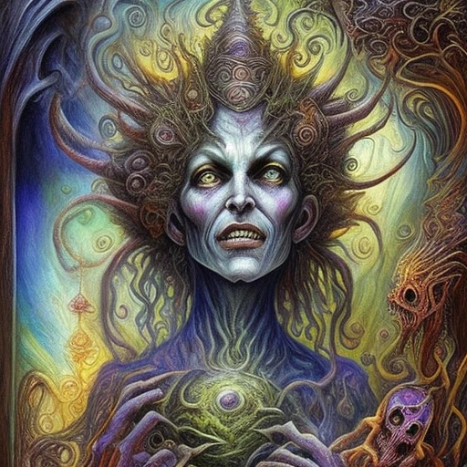 The Mother Of All Monsters, concept art, horror, arcane, fantasy art, by Josephine Wall, by Amanda Sage, mysterious, vibrant, by Alexandros Pyromallis, epic, stunning, occult, witchcore