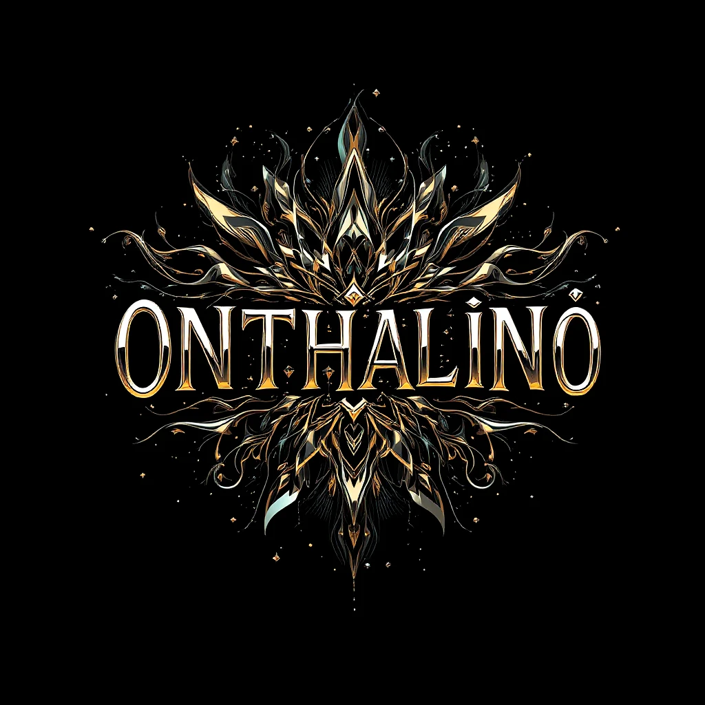 Create a highly detailed logo for a streetwear clothing brand named 'Onthalinë. ' The design should embody a blend of luxury and urban street style, with a 'chrome opium' aesthetic. The logo must feature intricate metallic chrome textures that reflect light dynamically, paired with bold, modern typography that has a slight futuristic flair. Surround the text with abstract patterns or shapes that convey energy and movement, such as liquid metal flows, sharp geometric edges, or smoke-like effects. Incorporate subtle opulent details like jewel-tone accents in deep emerald or sapphire, contrasting with a sleek black background. The overall vibe should be edgy, innovative, and premium, appealing to a trendsetting and fashion-conscious audience. Ensure the design is versatile for use across clothing tags, storefronts, and digital branding.