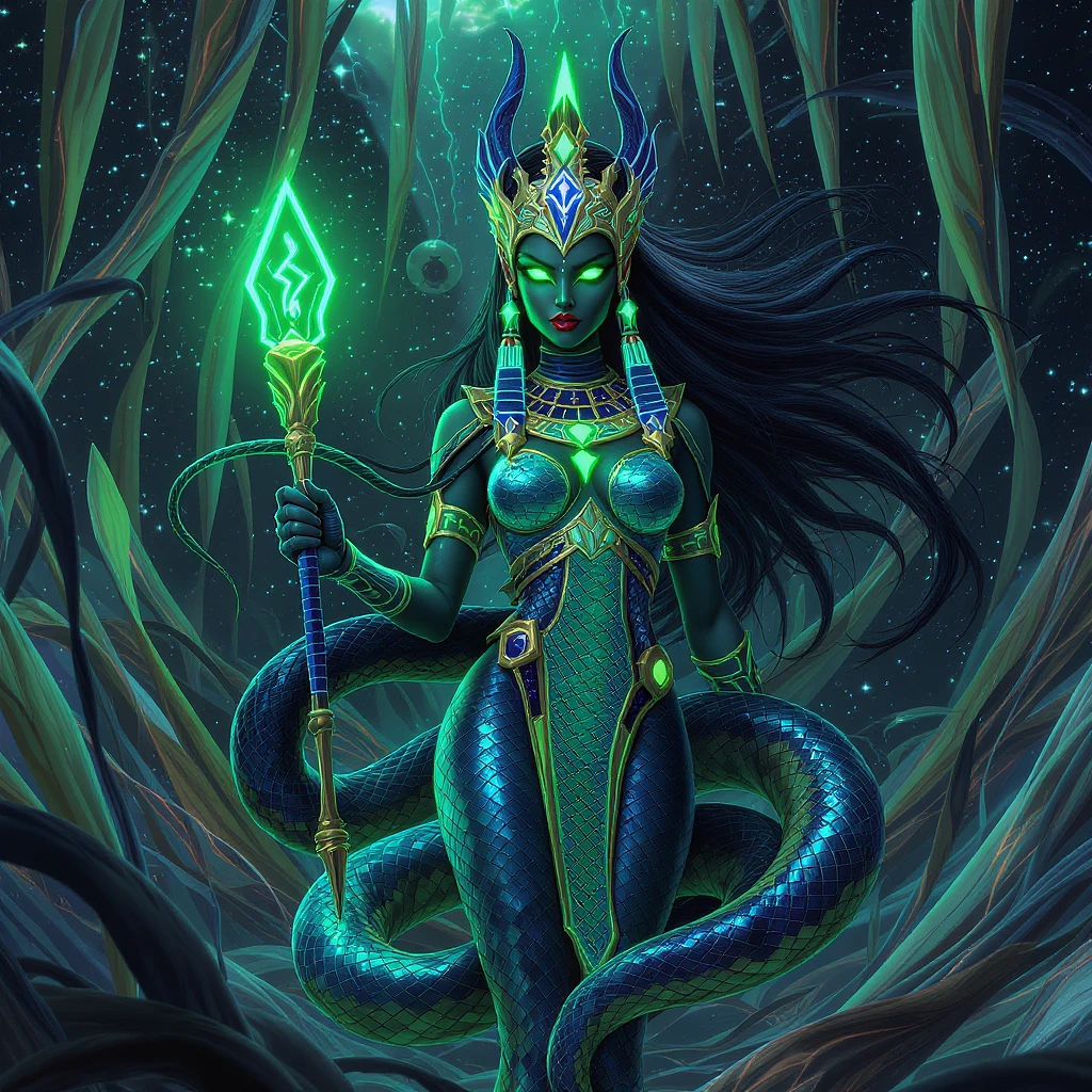 { "nft_name": "Wadjet, Goddess of Protection and Lower Egypt", "collection": "Divine Neteru: Khemetic Goddesses Reborn", "description": "Wadjet, the Khemetic goddess of protection and Lower Egypt, reimagined in an Afrofuturist aesthetic. This NFT captures her serpentine power and guardian spirit, blending Khemetic mythology with futuristic digital art. ", "visual_design": { "character": { "pose": "Vigilant pose, coiled with power", "attire": { "type": "Scaly robe", "colors": ["emerald green", "cobalt blue"] , "details": "Shimmering with holographic snake scales and cybernetic coil patterns" }, "crown": { "type": "Uraeus crown", "details": "Glowing cobra head with neon-green eyes and hieroglyphs (𓇳𓄿𓆓𓏏𓇾) ", "animation": "Subtle cobra sway" }, "accessories": { "papyrus_scepter": { "position": "Held in one hand", "details": "Holographic papyrus scepter glowing with protective energy", "animation": "Pulsing energy glow" } }, "head": { "description": "Human head with serpentine features", "animation": "Subtle scale shimmer" }, "eyes": { "description": "Glowing with serpentine intensity, reflecting guardianship", "colors": ["neon green", "cobalt blue"] } }, "background": { "setting": "Cosmic delta in a futuristic Kemet", "elements": [ "Holographic papyrus marshes", "Neon cobra statues" ], "animations": [ "Swaying papyrus", "Flickering cobra eyes" ] } }, "afrofuturist_elements": { "description": "Fuses Khemetic serpentine power with sci-fi guardianship", "details": [ "Holographic snake scales and cybernetic coil patterns on robe", "Holographic papyrus marshes and neon cobra statues", "Animated uraeus crown and glowing scepter" ], "inspiration": "Aya’s AI-driven Generating Binti Worlds" }, "color_palette": [ "emerald green", "cobalt blue", "neon green", "cosmic black" ], "art_style": { "primary": "Hand-drawn detail for Khemetic authenticity", "secondary": "AI-enhanced effects for futuristic dynamism", "description": "Combines Khemetic serpent imagery with Afrofuturist sci-fi aesthetics, featuring subtle animations for digital vibrancy" }, "technical_specs": { "platform": "XRP Ledger (XLS-20 standard) ", "file_format": "PNG or MP4 (for animations) ", "resolution": "2048x2048 pixels", "storage": "IPFS for decentralized hosting, cached on Cloudflare for fast display", "metadata": { "attributes": [ { "trait_type": "Goddess", "value": "Wadjet" }, { "trait_type": "Rarity", "value": "Rare (1 of 30) " }, { "trait_type": "Crown", "value": "Uraeus with hieroglyphs" }, { "trait_type": "Animation", "value": "Swaying cobra and pulsing scepter" } ], } }, "prompt_summary": "Create a digital NFT artwork of Wadjet, the Khemetic goddess of protection and Lower Egypt, in a vigilant pose with an emerald green and cobalt blue scaly robe shimmering with holographic snake scales and cybernetic coil patterns. Her uraeus crown with a glowing cobra head and neon-green eyes sways subtly, adorned with hieroglyphs (𓇳𓄿𓆓𓏏𓇾) . She holds a holographic papyrus scepter with pulsing energy. Her eyes glow with serpentine intensity. The background features a cosmic delta with holographic papyrus marshes and neon cobra statues. Use a color palette of emerald green, cobalt blue, neon green, and cosmic black, blending hand-drawn Khemetic details with AI-enhanced sci-fi effects. " }