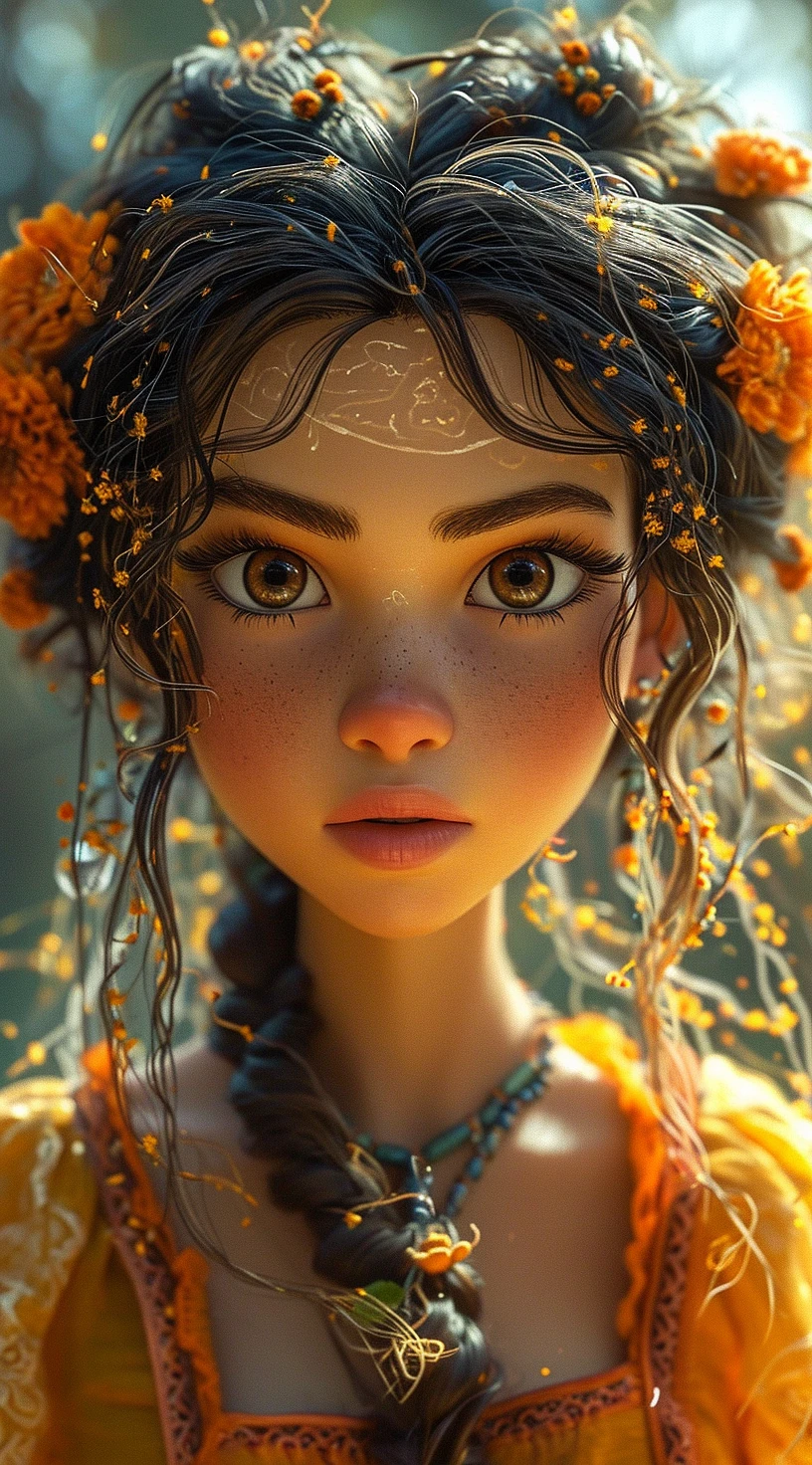 a girl, in the style of unreal engine 5, mexican folklore-inspired, animated gifs, candycore, mark keathley, goro fujita, advertisement inspired --ar 71:128 --stylize 750 --v 6