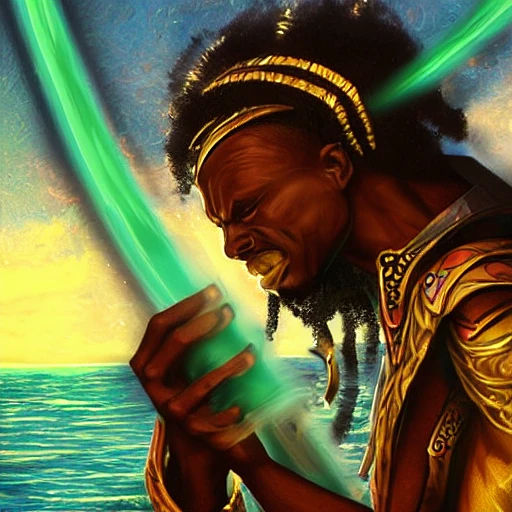 teferi's protection Magic the gathering A closeup of an ancient African wizard casting a spell at the beach in the starlight as digital art