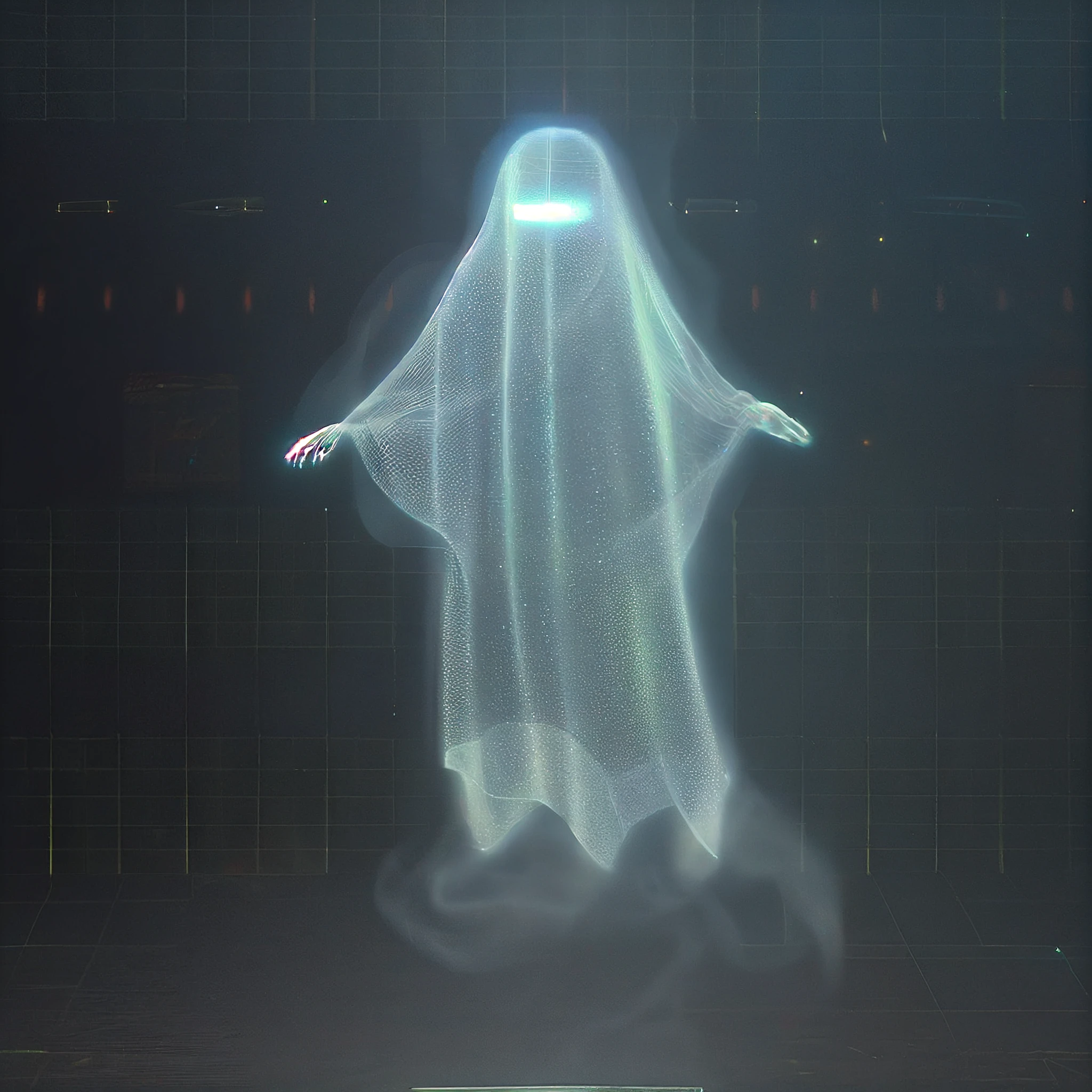 Hologram ghost dancing, dark backround, high quality, atmospheric lights, photo-realistic, 4k octane, ultra-realistic, FXAA, TXAA, RTX, SSAO, Shaders, high contrast, Cel shading, atmospheric light, high quality, ultra-realistic, ultra-detailed, intricate detail, 8k, hyper-realistic, Unreal engine, Octane render --v 4