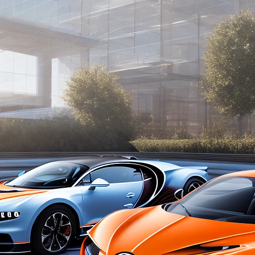 photo of a Bugatti Chiron pur sport, orange in colour, black wheels, showroom setting, showroom lights, pbr materials, reflections, super realism, 8k, unreal engine 5, super optimization, ultra settings