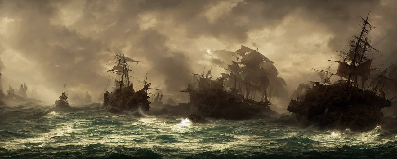 ship sinking, beautiful dynamic lighting, cinematic, wide angle establishing shot, extremely high detail, photo realistic, cinematic lighting, post processed, concept art, artstation, matte painting, style by Anne-Louis Girodet , unreal engine 8k