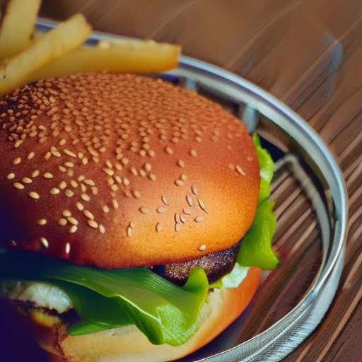 Stable Diffusion prompt: A close-up of a gourmet burger with a juicy beef p...